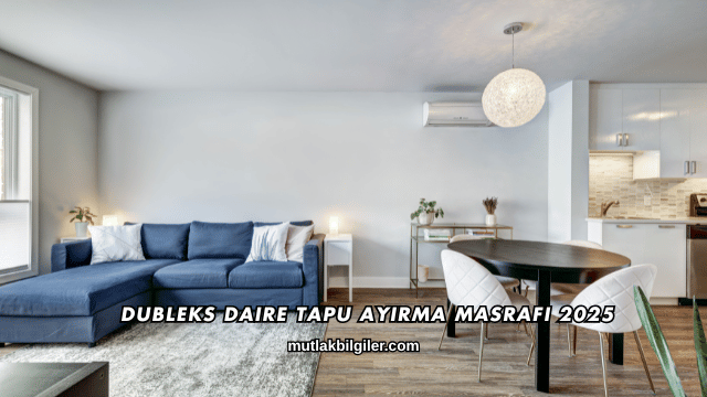 2025 yılında dubleks daire tapu ayırma masrafı, tapu harcı, proje çizim ücreti, belediye onayı ve noter masrafları dahil olmak üzere ortalama 45.000 TL ile 85.000 TL arasında değişmektedir. Bu tutar, dairenin bulunduğu şehir, büyüklüğü ve proje detaylarına göre farklılık gösterebilir.